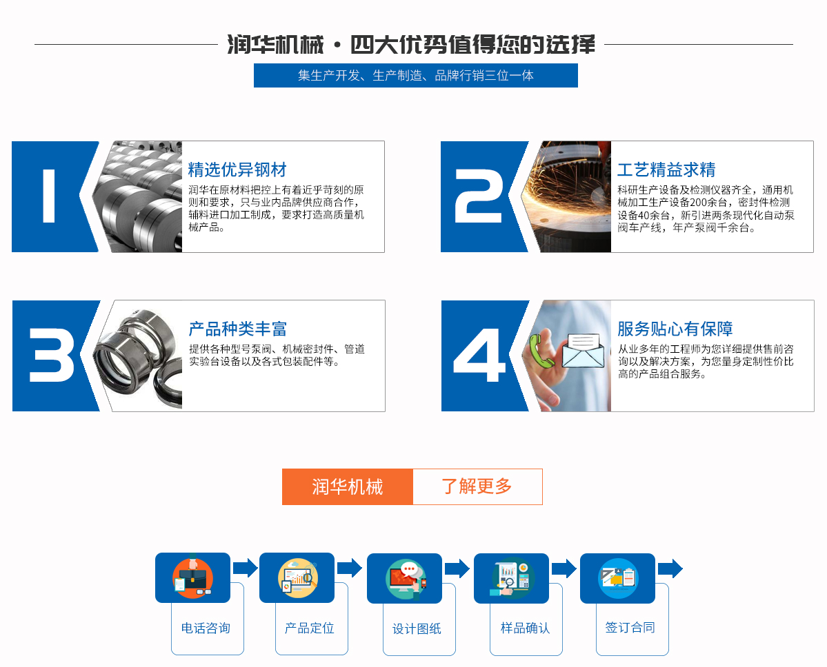 安徽潤華機械有限公司做落于風景如畫、典雅的投資熱土----——天長市。目前公司形成了綜合性高新技術產業開發、生產制造、品牌行銷三位一體的現代實業。   公司成立以來一貫秉承“為客戶創造價值”經營理念,十分注重新產品的開發和性能的完善,引進國外設備和加工工藝為客戶提供產品。   公司十分注重人才的培養和培訓,使得潤華機械人才濟濟,各盡所...